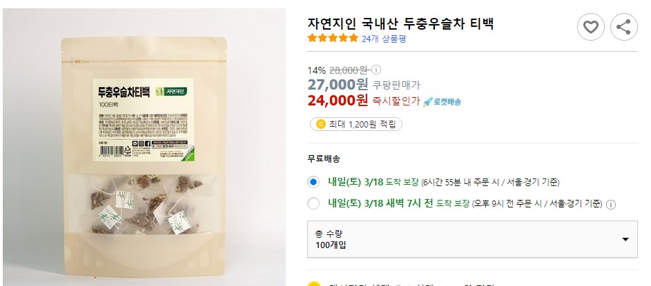 100티백이니까 하루에 1티백씩 드신다면 한달 8000원 꼴입니다.
