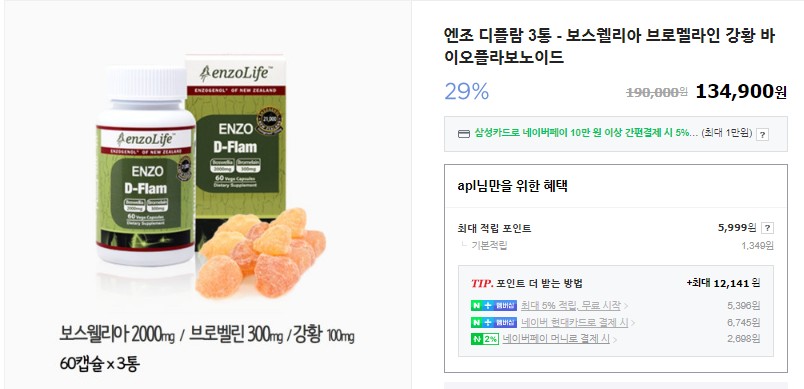 1. 보스웰리아 + 커큐민(강황) + 브로멜라인 + 바이오플라보노이드