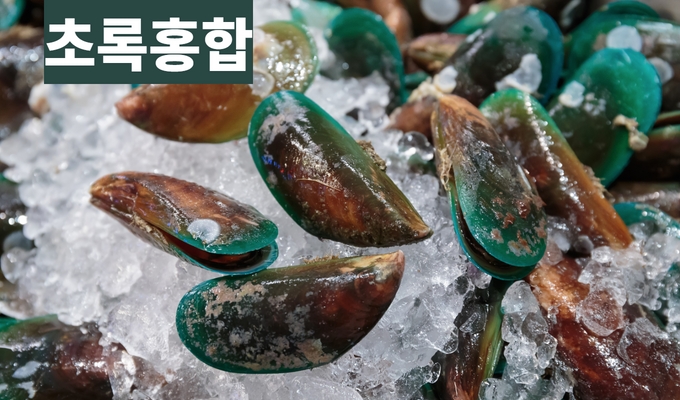 입 부위가 초록색인 홍합. 한국에서는 초록에 대한 표현이 다양한 관계로 초록입, 푸른입, 녹색입, 초롱입 홍합 등 여러 이름으로 불리는 식품입니다. 정식명칭은 Green Lipped Mussel로 약어로 GLM으로 불리기도 합니다. 서식지가 전세계에 딱 한 곳, 뉴질랜드이기 때문에 뉴질랜드 홍합으로도 불립니다.