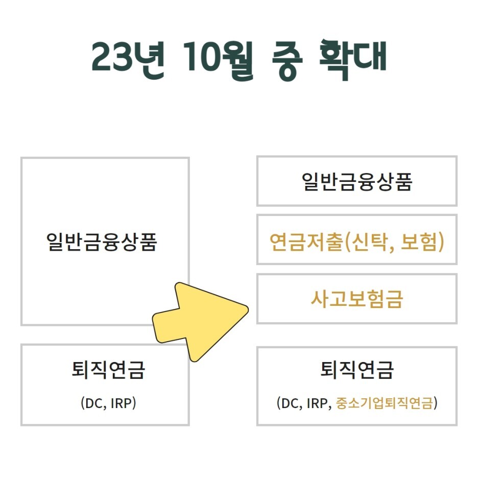 지금은 일반금융상품과 퇴직연금(DC, IRP)만 되었는데