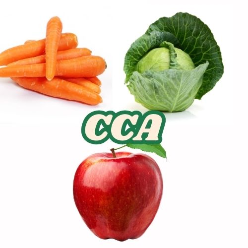 당근(Carrot), 양배추(Cabbage), 사과(Apple)을 주재료로 한 건강 주스입니다.