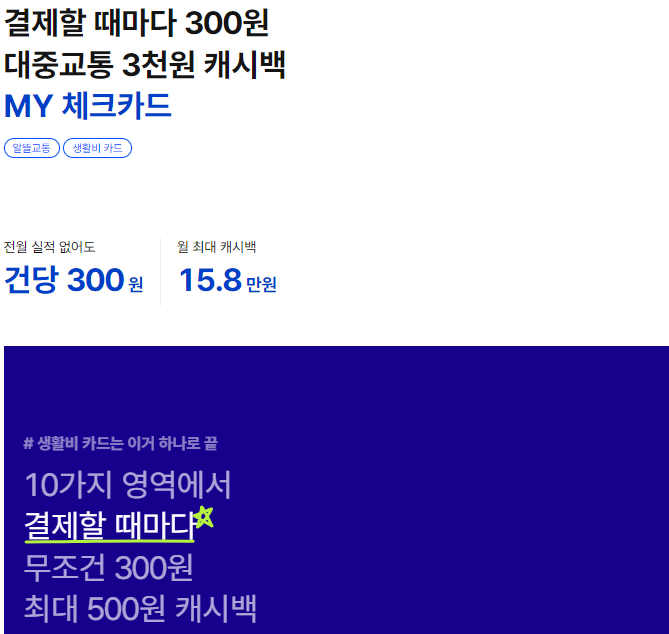 캐시백 조건은 5000원 이상 쓸 때마다 300원이 익일 캐시백이 되고